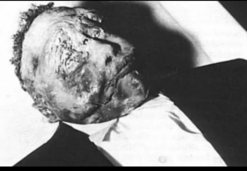 Mamie Till (Emmett Till’s mother) said her son’s eyeball was hanging out of its eye socket, the bridge of his nose looked liked it had been chopped with a meat cleaver, and his tongue was “choked out”. He was also shot in the head.